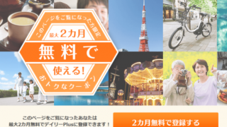 おでかけ デイリーPlusとは?便利な使い方や解約方法を解説します デイリーPlusはみなさんご存知のYahoo!JAPANが提供している、1,000,000件以上の特典が最低価格保証で受けられる福利厚生サービスで、月額550円(税込)で映画、旅行、ジム、レンタカー、マッサージ、エステ、ホテルなどいつでも最... 2017.03.26 おでかけクーポン